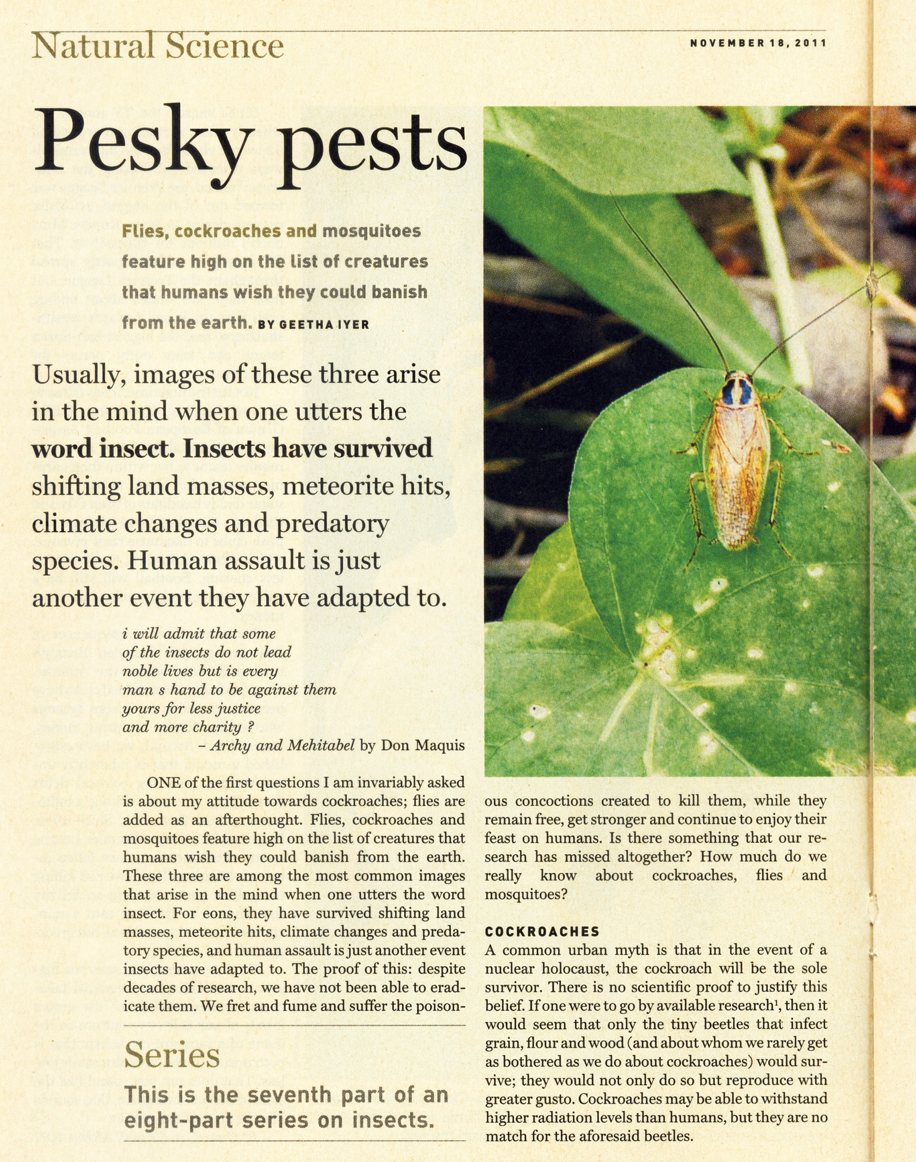 For nature lovers, and especially for those with scant knowledge of the insect kingdom, we are pleased to offer one of the finest series on the "World of Insects" by Dr. Geetha Iyer. This engrossing series with insightful text and marvellous photographs was first published in eight parts in Frontline magazine in the year 2011.